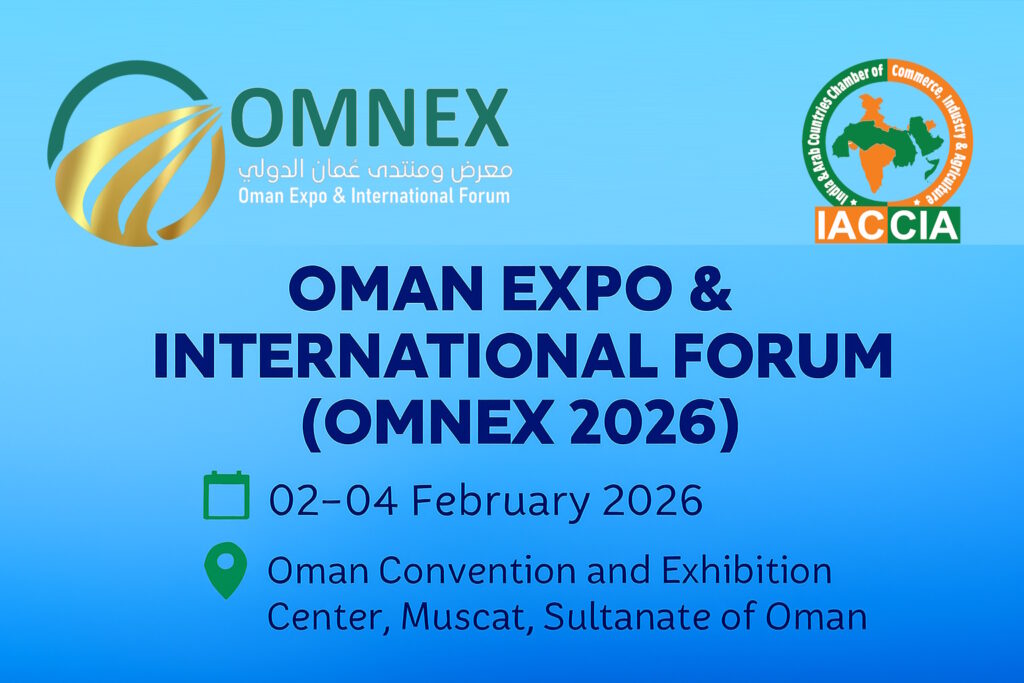 1 Jan 2026, New Delhi The India & Arab Countries Chamber of Commerce, Industry & Agriculture (IACCIA) is pleased to announce its official facilitation of Indian participation at the Oman Expo & International Forum (OMNEX 2026), where global ambition meets regional opportunity. Oman Expo & International Forum (OMNEX 2026) 📅 Date: 02–04 February 2026 📍 […]