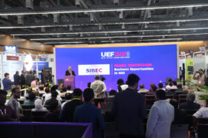 Dr. Waiel Awwad addressing business leaders at the UEF Trade Summit in Chennai